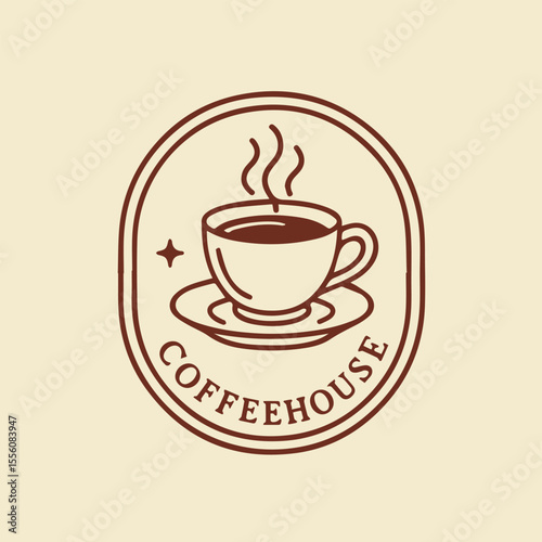 Obraz premium Warm Steaming Coffee Cup Coffeehouse Logo Design with Vintage Minimalist Style