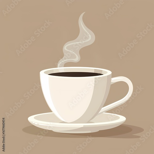 Fototapeta premium Warm steaming coffee cup on saucer with gentle swirling steam rising...