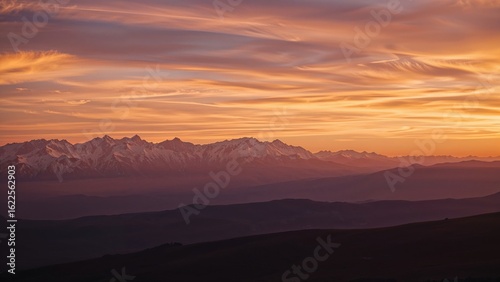© NeuralNiche, Obraz premium Warm sunset colors highlighting snowy summits and smooth hillsides.