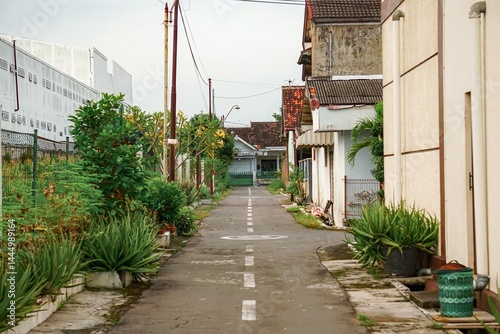© ANTOSYS, Obraz premium Warm sunset glow over a quaint residential street.