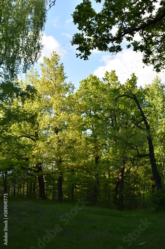Fototapeta premium warm sunset in the green summer forest