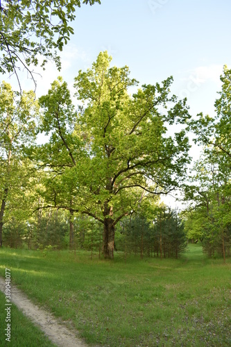Fototapeta premium warm sunset in the green summer forest