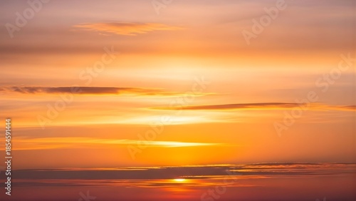 © lamhalim, Fototapeta premium Warm sunset sky with orange gradient over horizon