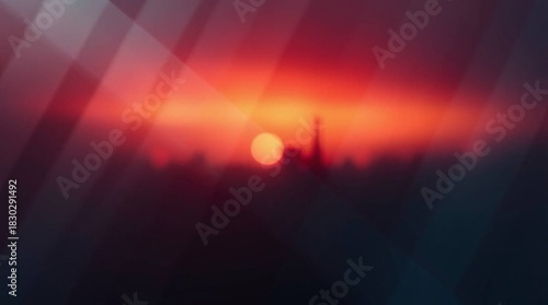 © Roman Artist, Fototapeta premium Warm sunset with blurry city silhouette background