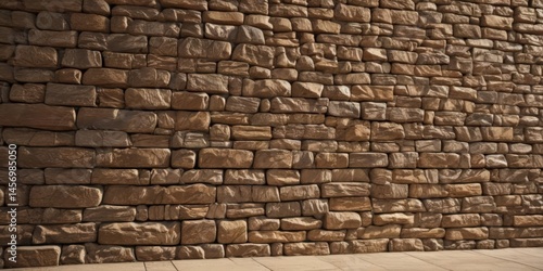 Fototapeta premium Warm-toned stacked stone wall, sunlight highlights, subtle shadowing ,...