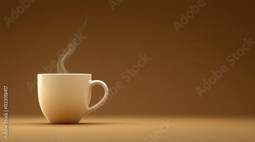 Obraz premium Warm White Coffee Cup with Steam on Minimalist Brown Background for Cozy...