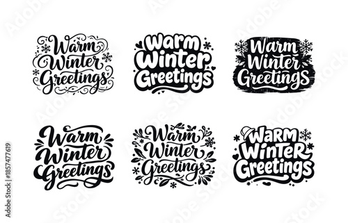 © Coosh448, Fototapeta premium Warm Winter Greetings. Warm Winter Greetings. Set lettering. harmonious lettering variations of the same emblematic concept, each with different artistic
