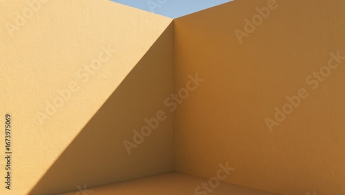 © Nazuro, Fototapeta premium Warm yellow corner with stark shadow and blue sky