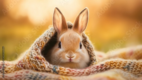 © Marco, Fototapeta premium Warmer Hasenpullover als kuscheliges Winteroutfit. Kaninchen im Schal.