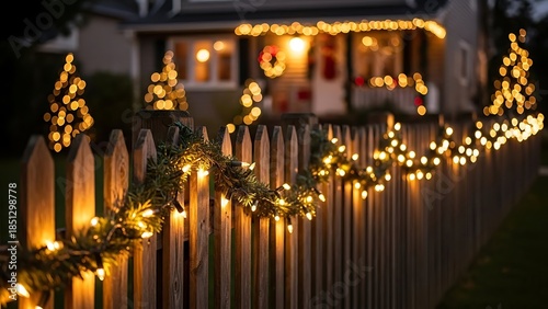© Limon, Fototapeta premium Warmly lit christmas fence