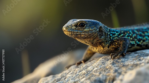 Naklejka premium Warmth-loving desert lizard basks in sunlight atop rock