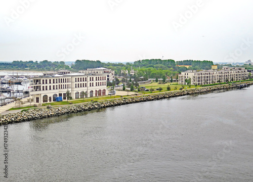 © sanguer, Fototapeta premium Warnemunde, trasatlántico en el puerto