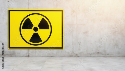 © Anastasia, Obraz premium Warning sign for radiation in yellow on concrete wall