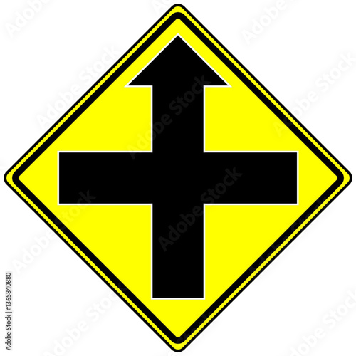 Fototapeta premium Warning sign Intersection with straight and turn ahead