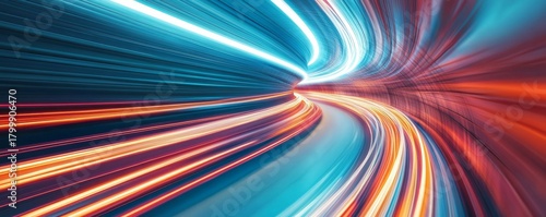 Obraz premium Warp Speed Abstract Light Streaks in a Futuristic Tunnel , speed , technology