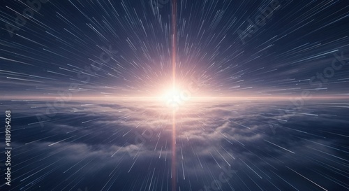 © Sadek, Fototapeta premium Warp Speed Light Streaks Towards Bright Light