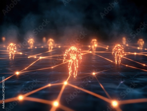 Fototapeta premium Warring ai programs engage in digital battlefield virtual network 3d...