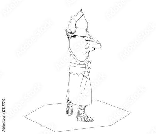© vadim_fl, Naklejka premium warrior character, contour visualization, 3D illustration, sketch, outline