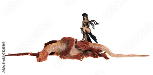 © photosvac, Fototapeta premium Warrior Girl and Dragon