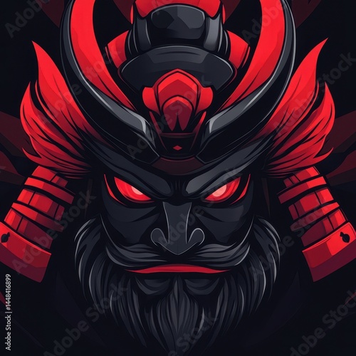Naklejka premium Warrior mask with bold colors and intricate details representing strength and...
