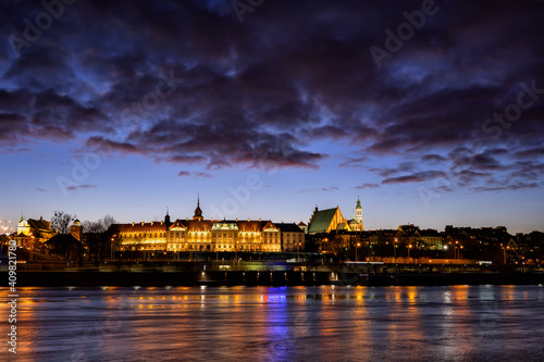 © Artur Bogacki, Fototapeta premium Warsaw City Skyline Twilight River View In Poland