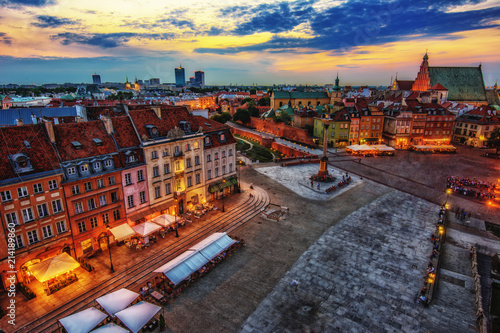 © patrick, Fototapeta premium Warsaw In Evening Time with Lights On