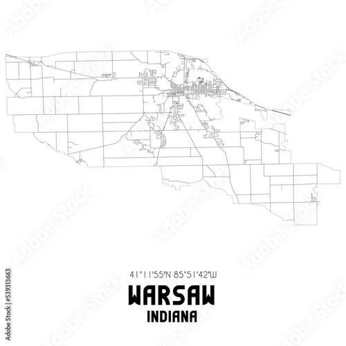 Naklejka premium Warsaw Indiana. US street map with black and white lines.