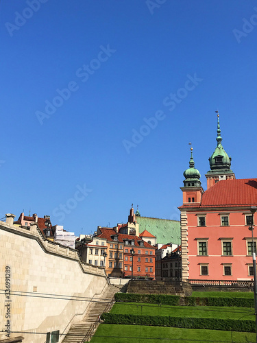 © Vitalii, Fototapeta premium Warsaw, Poland - 21/ 06/ 2019:. Beautiful multi-colored houses in the old town in Warsaw. The central streets of the historic center of Warsaw. The main tourist attraction of Warsaw.
