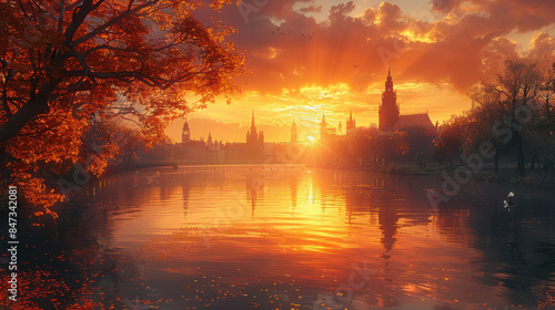 © Novanture, Obraz premium Warsaw, Poland city skyline created with Generative AI technology