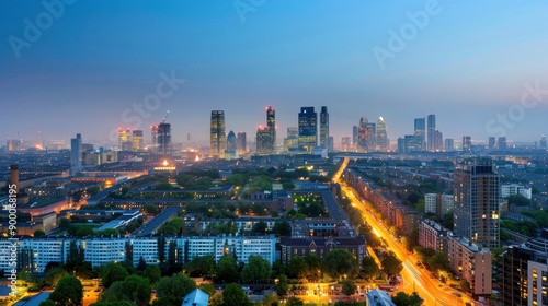 © diowcnx, Fototapeta premium Warsaw Skyline at Dawn