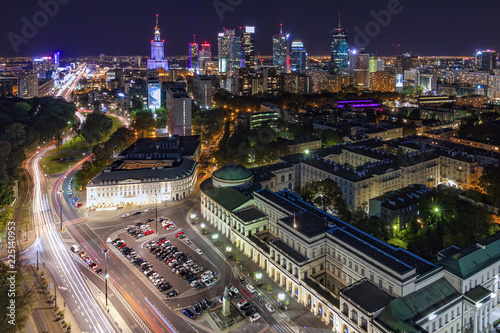 © gswozniak, Fototapeta premium Warsaw skyline by night
