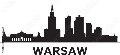 Obraz premium Warsaw Skyline Silhouette Vector — Palace of Culture and Science and Modern Buildings