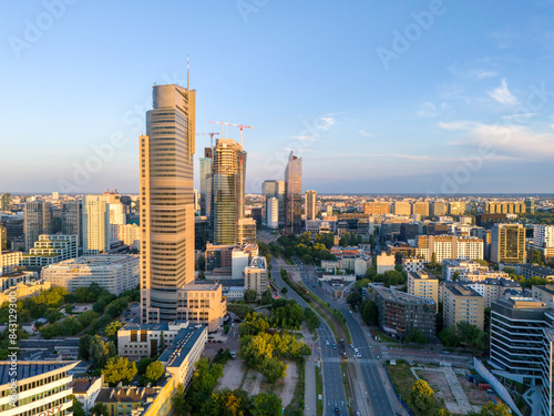 Obraz premium Warszawa, panorama miasta o zachodzie słońca