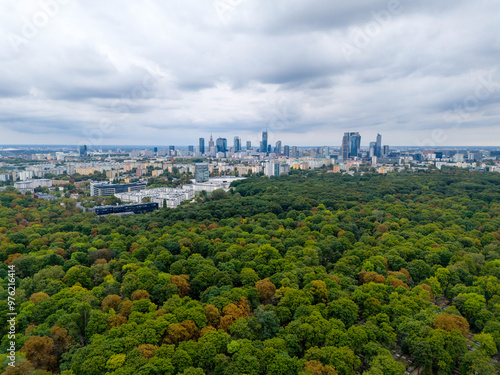© hunter76, Fototapeta premium Warszawa, panorama miasta z lotu ptaka. Widok z okolic cmentarza Powązkowskiego