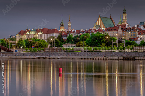 Naklejka premium Warszawa panorama Starego Miasta nad Wisłą w nocy