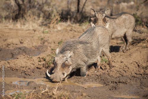 © Tyrone, Fototapeta premium Warthog drinking water from a puddle