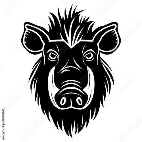 © Rawpixel.com, Obraz premium Warthog face linear illustration animal black vector