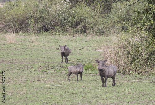 Fototapeta premium Warthog family in Queen Elizabeth National Park, Uganda