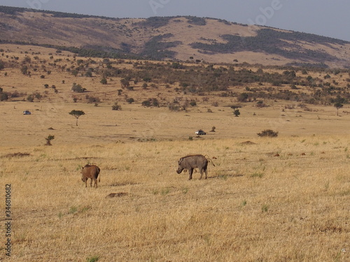 © Mithrax, Fototapeta premium Warthogs on the prairie, Safari, Game Drive, Maasai Mara, Kenya