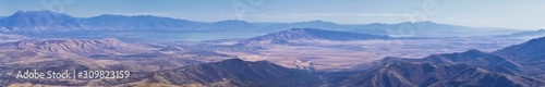 © Jeremy, Fototapeta premium Wasatch Front Rocky Mountain landscapes from Oquirrh range looking at Utah Lake during fall. Panorama views near Provo, Timpanogos, Lone and Twin Peaks. Salt Lake City. United States.