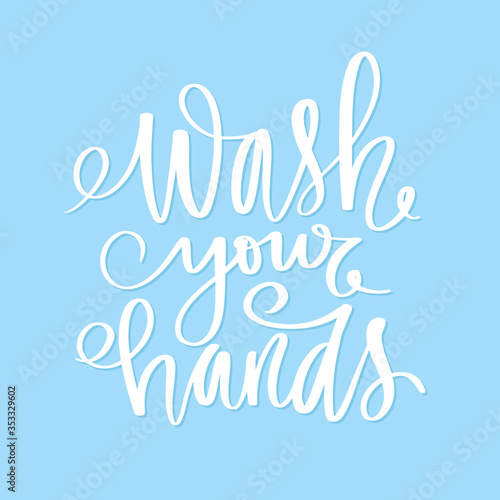 © yana2607, Obraz premium Wash your hands. Motivation hygiene poster. Handwritten lettering.