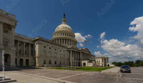 Obraz premium Washington DC Capitol dome. Congress and Senate building. USA flag over...