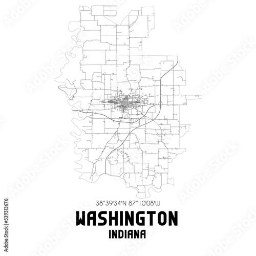 Naklejka premium Washington Indiana. US street map with black and white lines.