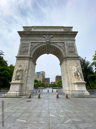 © elvis901, Obraz premium Washington square park monument on a cloudy day