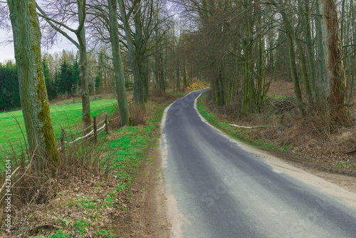 © boguslavus, Obraz premium Wąska, wiejska droga asfaltowa pośród pól.