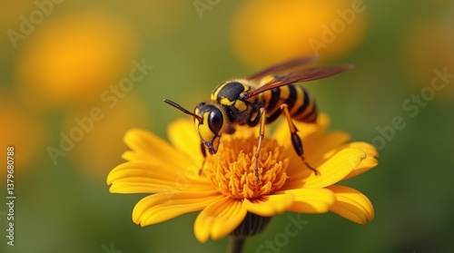 © Alex Pios, Fototapeta premium Wasp collecting nectar from a wildflower