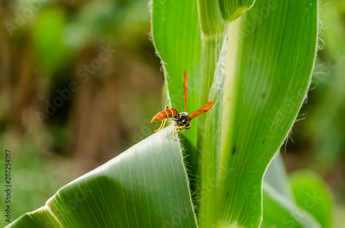 © Jacquelin, Fototapeta premium Wasp On Edge Of Corn Leaf
