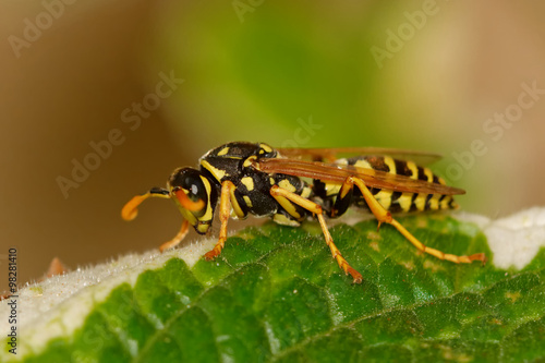 © NERYX, Fototapeta premium Wasp sitting on green leaf