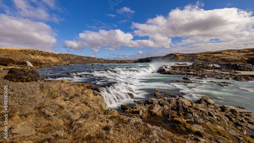© jsr548, Fototapeta premium Wasserfall auf Island vor bewölktem Himmel