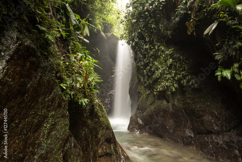 © benicoma, Fototapeta premium Wasserfall mit fließenden Bach in satt grüner Vegetation des Regenwalds. Mindo, Ecuador